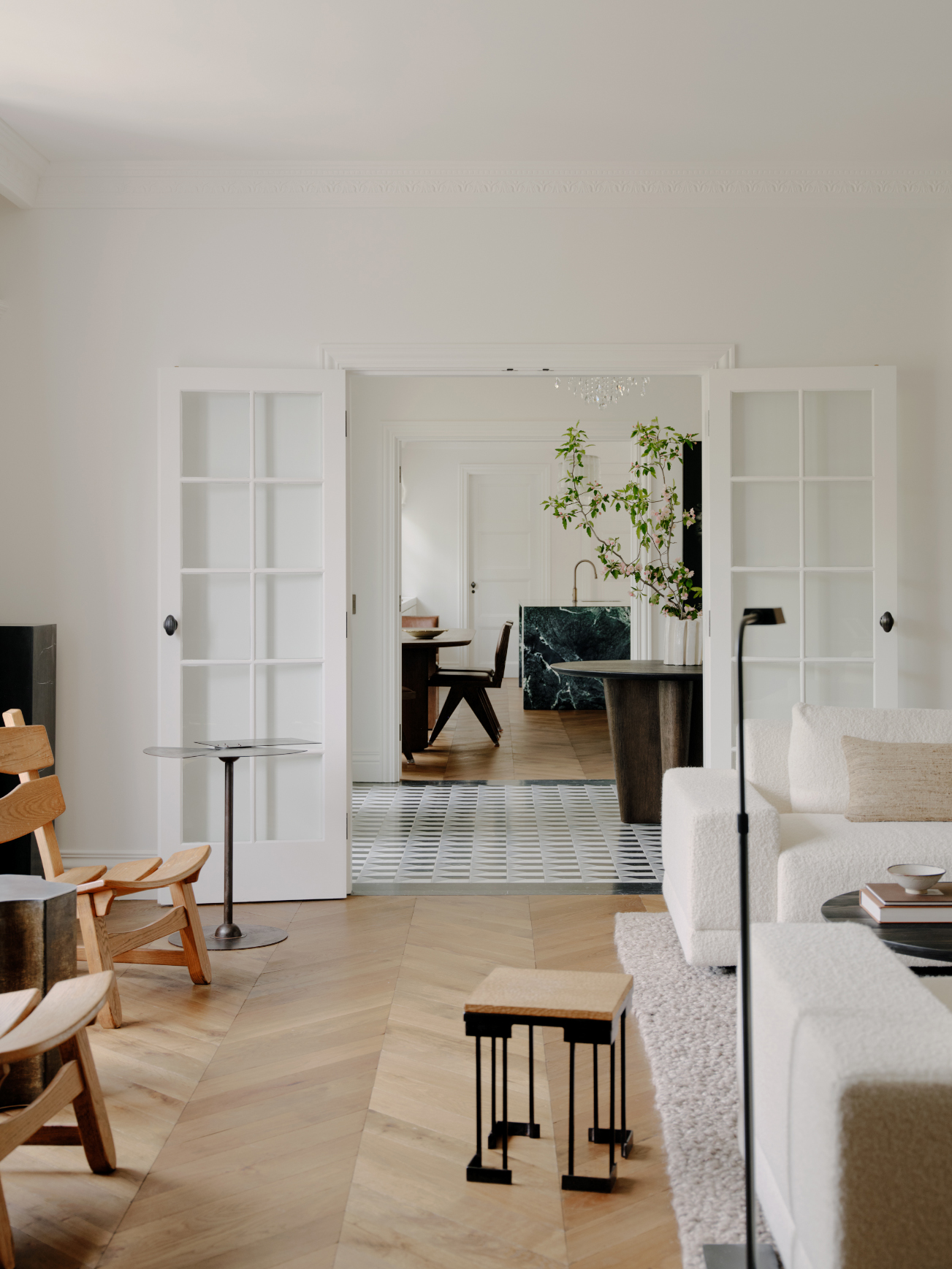 Although not heritage listed, the renovation followed the discipline of a conservation project. Original doors, skirtings, cornices, architraves and plaster sconces were restored or carefully replicated. Each new intervention continues the home’s language, complementing rather than competing.
